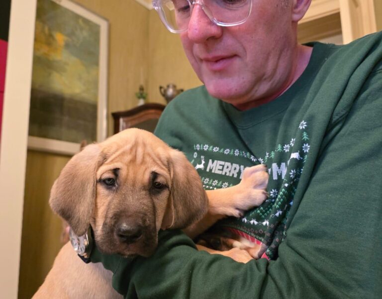 gestern war ein neuer Nachbar bei uns auf Besuch. ein wunderbarer Welpe der nicht weit von uns zu Hause ist. Seine Besitzerin kennen wir schon sehr lange, und sie kam vorbei um uns dieses liebe Tier vorzustellen. Er hat natürlich sofort die Herzen aller anwesenden Personen erobert.